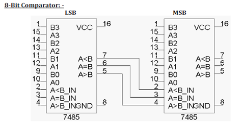Implement 4-Bit Magnitude Comparator using IC-74LS85