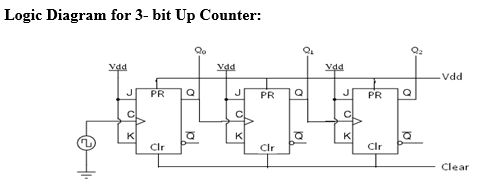 3-Bit Asynchronous DOWN Counter using 74LS76