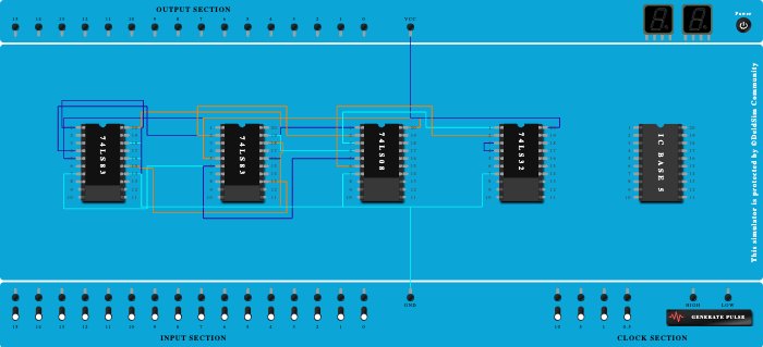 - Connect Pin-2 (Output) of ICBase-2 (74LS83) to Pin-4 (Input) of ICBase-1 (74LS83).
