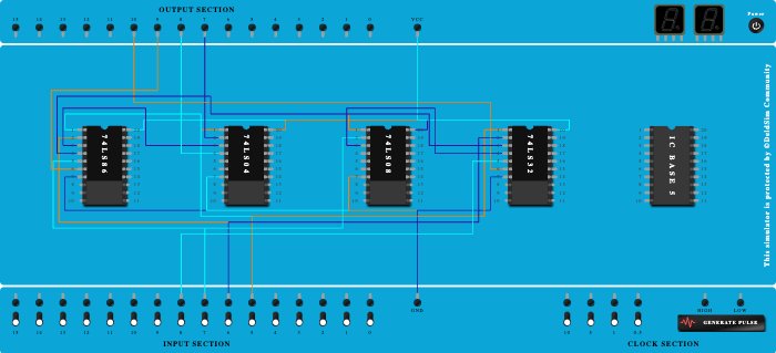 - Connect Input-7 to Pin-5 (Input) of ICBase-1 (74LS86).