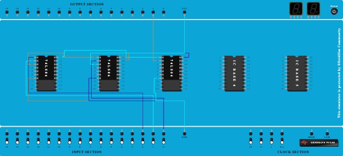 - Connect Input-0 to Pin-2 (Input) of ICBase-2 (74LS86).