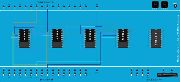 - Connect Pin-4 (Input) of ICBase-1 (74LS86) to Pin-3 (Output) of ICBase-4 (74LS32).