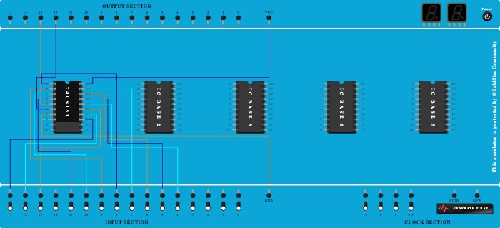- Connect Input-8 to Pin-1 (Input) of ICBase-1 (74LS151).
