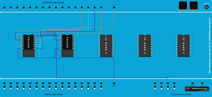 - Connect Pin-3 (Input) of ICBase-1 (74LS90) to Pin-3 (Output) of ICBase-2 (74LS08).