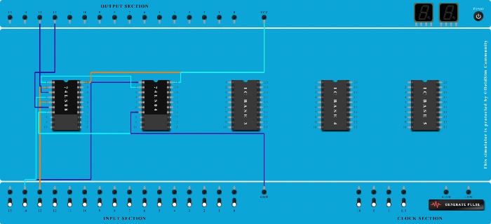 - Connect Output-12 to Pin-6 (Output) of ICBase-1 (74LS08).