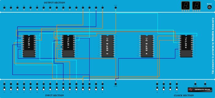 - Connect Pin-5 (Input) of ICBase-2 (74LS11) to Pin-2 (Output) of ICBase-5 (74LS04).