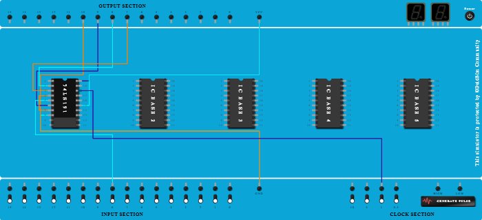 - Connect Clock port of 1Hz frequency to Pin-18 (Input) of ICBase-1 (74LS191).