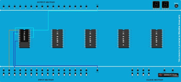 - Connect Pin-16 (Input) of ICBase-1 (74LS00) to Pin-3 (Output) of ICBase-1 (74LS00).