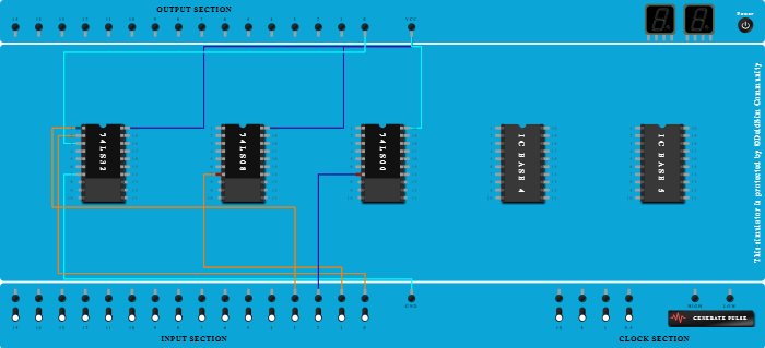 - Connect Pin-3 (Output) of ICBase-1 (74LS32) to Output-0.
