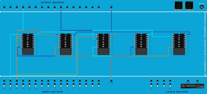 - Connect Pin-3 (Output) of ICBase-1 (74LS86) to Pin-2 (Input) of ICBase-2 (74LS86).