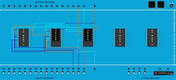 - Connect Output-1 to Pin-3 (Output) of ICBase-3 (74LS32).