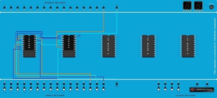 - Connect Output-0 to Pin-6 (Output) of ICBase-2 (74LS32).