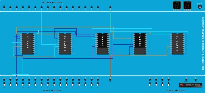 - Connect Pin-6 (Output) of ICBase-4 (74LS08) to Pin-2 (Input & Output) of ICBase-1.