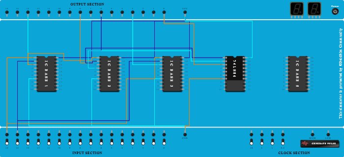 - Connect Pin-2 (Input) of ICBase-4 (74LS86) to Pin-4 (Input & Output) of ICBase-2.