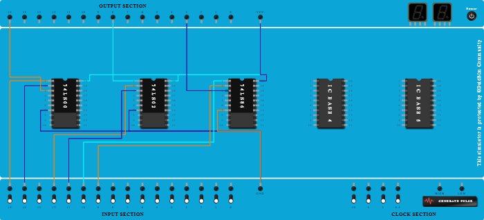 - Connect Input-9 to Pin-2 (Input) of ICBase-3 (74LS86).