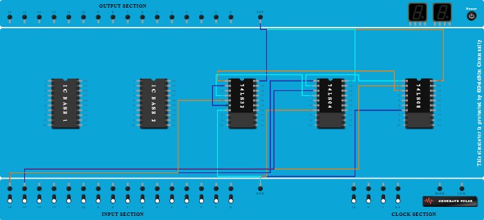 - Connect Pin-4 (Input) of ICBase-3 (74LS32) to Pin-4 (Output) of ICBase-4 (74LS04).