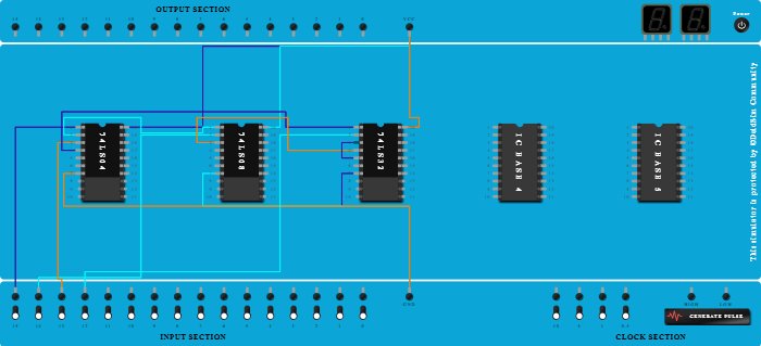 - Connect Pin-1 (Input) of ICBase-3 (74LS32) to Pin-4 (Output) of ICBase-1 (74LS04).