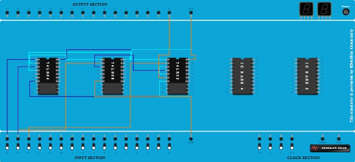 - Connect Output-0 to Pin-6 (Output) of ICBase-3 (74LS32).