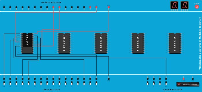 - Connect Input-14 to Pin-4 (Input) of ICBase-1 (74LS74).