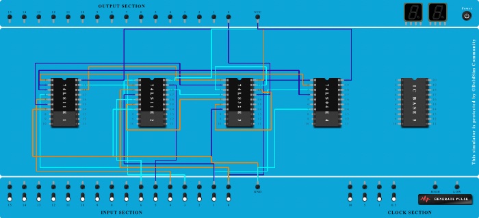 - Connect Output-0 to Pin-17 (Output) of ICBase-3 (74LS32).