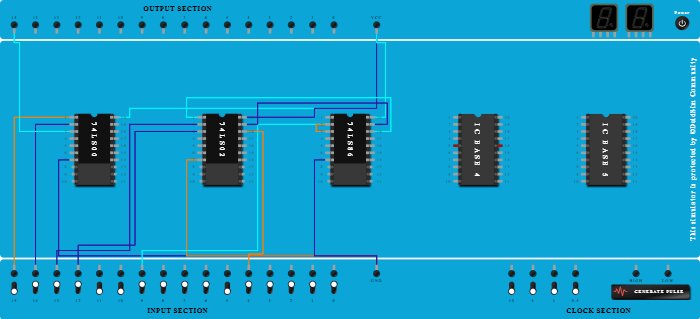 - Connect Pin-19 (Input) of ICBase-3 (74LS86) to Pin-19 (Output) of ICBase-2 (74LS02).