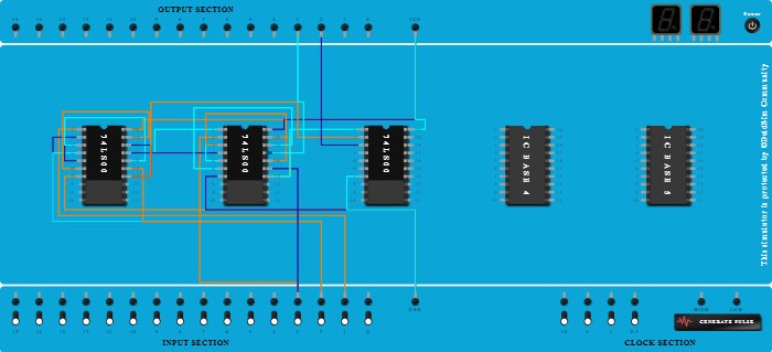 - Connect Pin-1 (Input) of ICBase-2 (74LS00) to Pin-17 (Output) of ICBase-1 (74LS00).