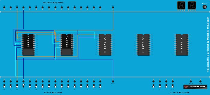 - Connect Pin-4 (Input) of ICBase-1 (74LS08) to Pin-2 (Output) of ICBase-2 (74LS04).
