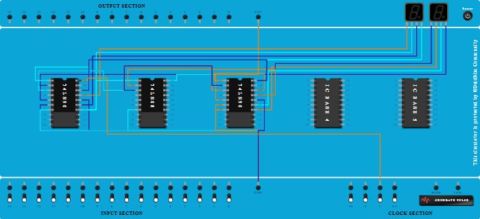 - Connect Pin-2 (Input) of ICBase-2 (74LS08) to Pin-17 (Output) of ICBase-3 (74LS90).