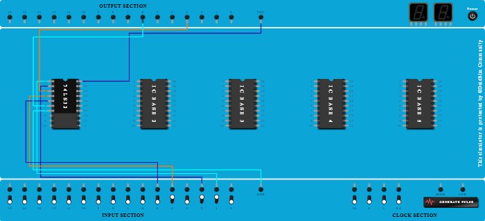 - Connect Pin-2 (Input) of ICBase-1 (74LS32) to Input-2.