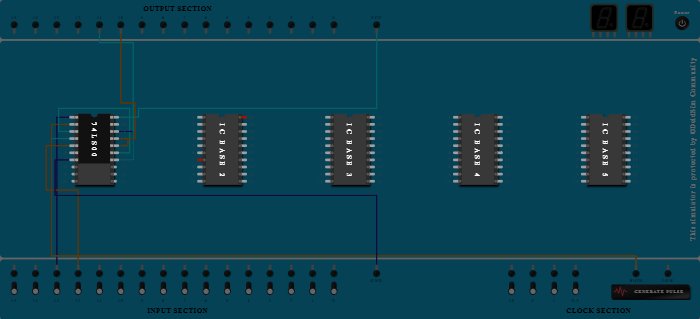 - Connect Pin-2 (Input) of ICBase-1 (74LS00) to Manual clock Port.
