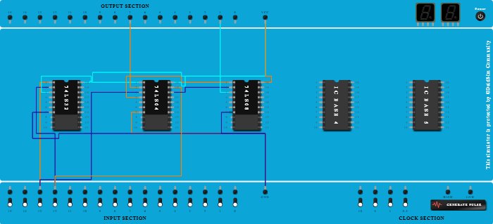 - Connect Pin-1 (Input) of ICBase-2 (74LS04) to Pin-3 (Output) of ICBase-1 (74LS32).