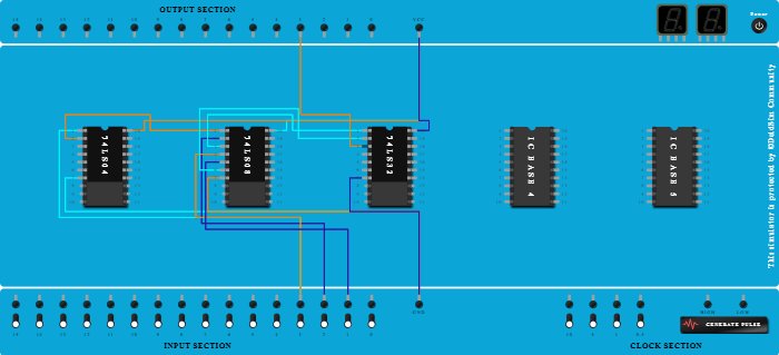 - Connect Output-3 to Pin-3 (Output) of ICBase-3 (74LS32).