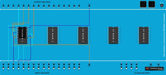 - Connect Pin-15 (Input) of ICBase-1 (74LS86) to Input-12.