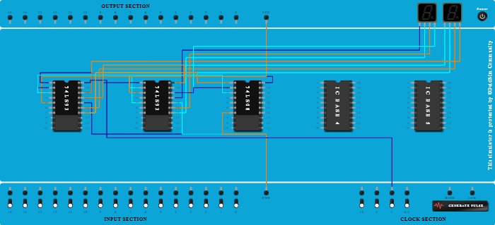 - Connect Pin-3 (Output) of ICBase-3 (74LS08) to Pin-2 (Input) of ICBase-1 (74LS93).