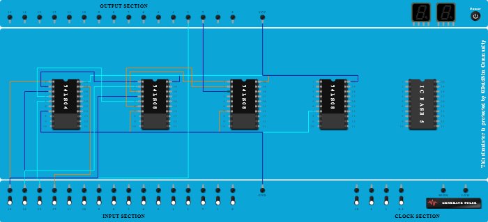 - Connect Pin-5 (Input) of ICBase-2 (74LS08) to Pin-4 (Output) of ICBase-1 (74LS04).
