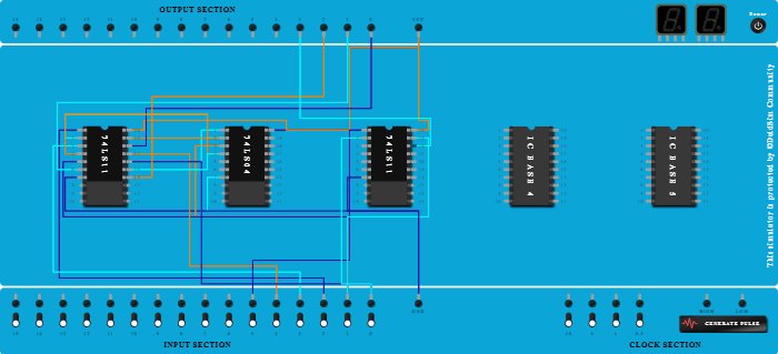 - Connect Pin-19 (Input) of ICBase-1 (74LS11) to Pin-4 (Output) of ICBase-2 (74LS04).