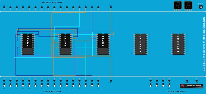 - Connect Pin-2 (Input) of ICBase-2 (74LS08) to Pin-4 (Output) of ICBase-1 (74LS04).