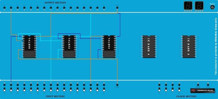 - Connect Pin-2 (Output) of ICBase-3 (74LS04) to Pin-2 (Input) of ICBase-2 (74LS32).