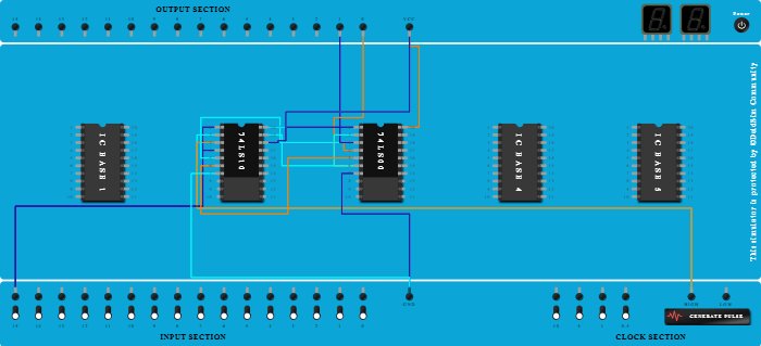 - Connect Pin-6 (Output) of ICBase-3 (74LS00) to Pin-19 (Input) of ICBase-2 (74LS10).