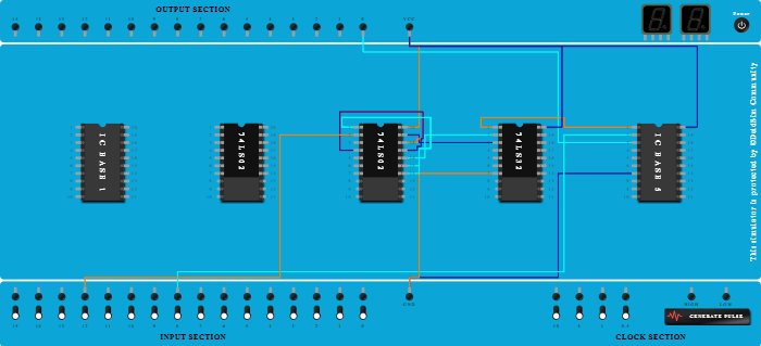 - Connect Pin-3 (Output) of ICBase-4 (74LS32) to Pin-19 (Output) of ICBase-3 (74LS02).
