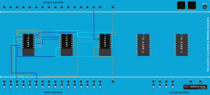 - Connect Output-1 to Pin-3 (Output) of ICBase-3 (74LS32).