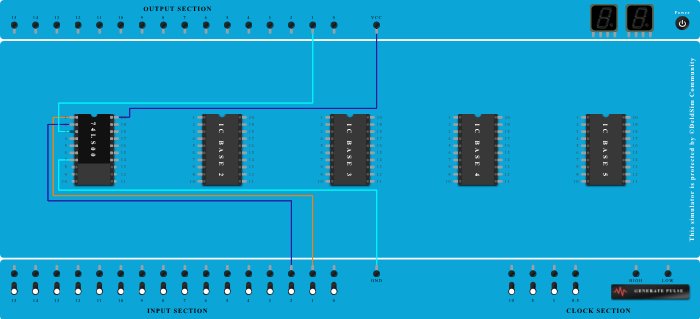 - Connect Input-2 to Pin-2 (Input) of ICBase-1 (74LS00).