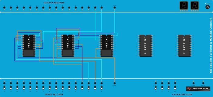 - Connect Pin-2 (Input) of ICBase-3 (74LS00) to Pin-17 (Output) of ICBase-2 (74LS00).
