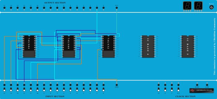 - Connect Pin-4 (Input) of ICBase-2 (74LS08) to Pin-2 (Output) of ICBase-1 (74LS04).