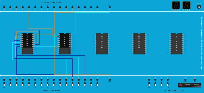 - Connect Pin-1 (Input) of ICBase-2 (74LS04) to Pin-14 (Output) of ICBase-1 (74LS32).