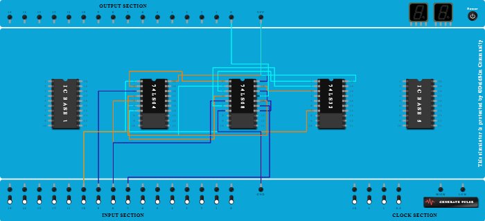 - Connect Pin-16 (Input) of ICBase-3 (74LS08) to Pin-4 (Output) of ICBase-2 (74LS04).