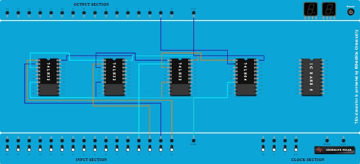 - Connect Pin-1 (Input) of ICBase-4 (74LS04) to Pin-3 (Output) of ICBase-3 (74LS32).