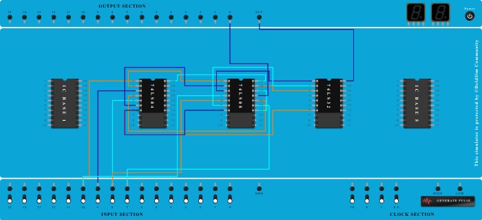 - Connect Pin-16 (Input) of ICBase-3 (74LS08) to Pin-4 (Output) of ICBase-2 (74LS04).