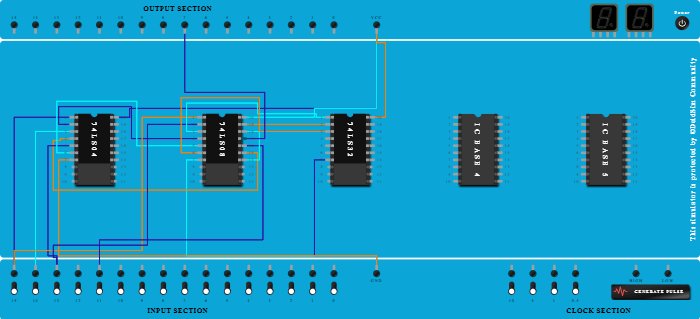 - Connect Pin-4 (Input) of ICBase-2 (74LS08) to Pin-2 (Output) of ICBase-1 (74LS04).