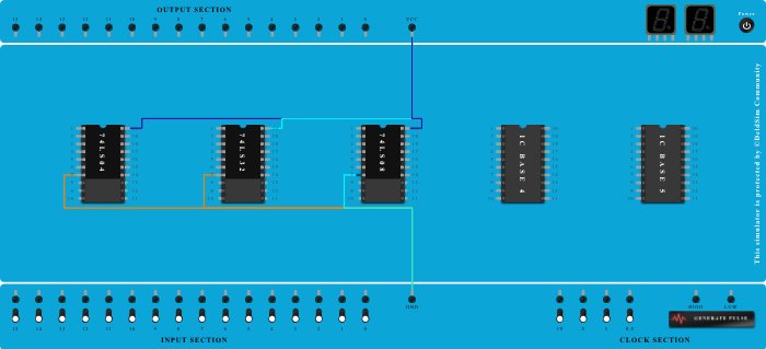 - Connect GND Port to Pin-7 (Ground) of ICBase-2 (74LS32).